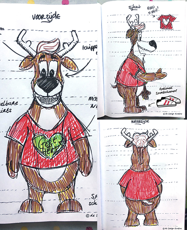 Na de schetsfase, verdere uitwerking en ontwikkeling door producent. Gert begint te leven!