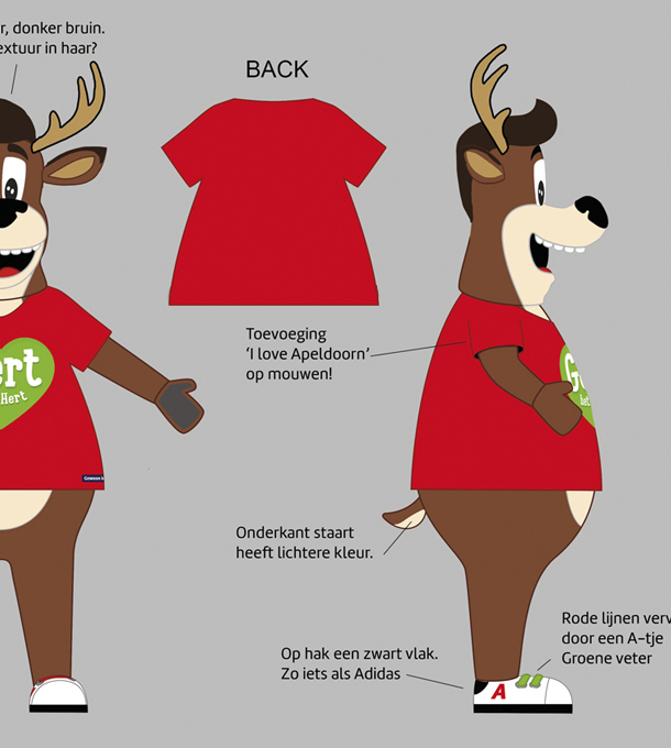 Gert het Hert is een echte kindervriend. Hij is sportief, kan goed dansen, houdt enorm van knuffelen (is namelijk heel zacht) en gaat heel graag op de foto. Hij zal hiervoor ook altijd de tijd nemen. Kortom, Gert het Hert is alles wat je van een stadsmascotte mag verwachten.